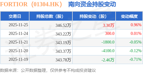 证券之星消息,11月25日南向资金增持3.3万股FORTIOR(01304.HK)。近5个交易日中,获南向资金增持的有2天,累计净增持2800.0股。近20个交易日中,获南向资金增持的有11天,累计净增持16.0万股。截至目前,南向资金持有FORTIOR(01304.HK)346.52万股,占公司已发行普通股的16.06%。
