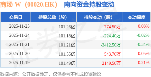 证券之星消息,11月25日南向资金增持774.5万股商汤-W(00020.HK)。近5个交易日中,获南向资金减持的有2天,累计净减持169.2万股。近20个交易日中,获南向资金增持的有13天,累计净增持2.2亿股。截至目前,南向资金持有商汤-W(00020.HK)101.26亿股,占公司已发行普通股的26.17%。