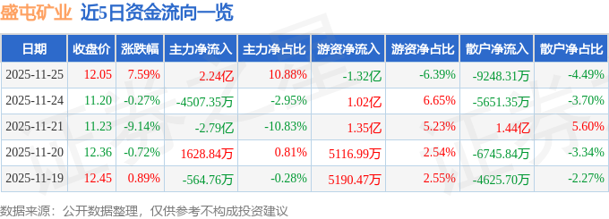 证券之星消息,截至2025年11月25日收盘,盛屯矿业(600711)报收于12.05元,上涨7.59%,换手率5.64%,成交量174.31万手,成交额20.6亿元。