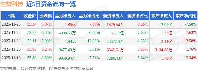 11月25日的资金流向数据方面,主力资金净流入1.86亿元,占总成交额7.0%,游资资金净流入1529.54万元,占总成交额0.58%,散户资金净流出2.01亿元,占总成交额7.58%。