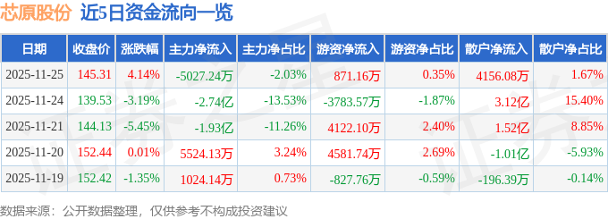 11月25日的资金流向数据方面,主力资金净流出5027.24万元,占总成交额2.03%,游资资金净流入871.16万元,占总成交额0.35%,散户资金净流入4156.08万元,占总成交额1.67%。