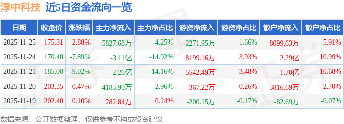 证券之星消息,截至2025年11月25日收盘,淳中科技(603516)报收于175.31元,上涨2.88%,换手率3.88%,成交量7.89万手,成交额13.71亿元。