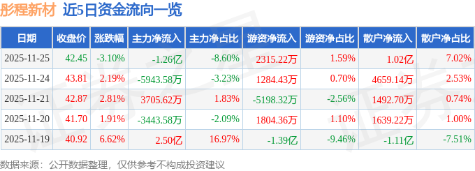 11月25日的资金流向数据方面,主力资金净流出1.26亿元,占总成交额8.6%,游资资金净流入2315.22万元,占总成交额1.59%,散户资金净流入1.02亿元,占总成交额7.02%。