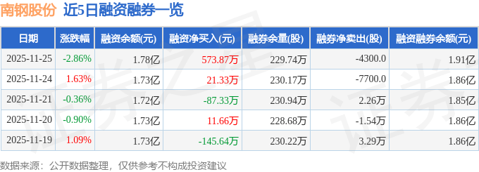 证券之星消息,截至2025年11月25日收盘,南钢股份(600282)报收于5.44元,下跌2.86%,换手率0.71%,成交量43.87万手,成交额2.42亿元。