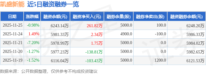 凯盛新能融资融券信息显示,融资方面,当日融资买入531.73万元,融资偿还269.92万元,融资净买入261.82万元,连续3日净买入累计265.91万元。融券方面,融券卖出100.0股,融券偿还0.0股,融券余量5000.0股,融券余额5.05万元。融资融券余额6248.2万元。