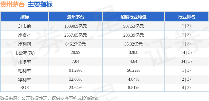 贵州茅台2025年三季报显示,前三季度公司主营收入1309.04亿元,同比上升6.32%;归母净利润646.27亿元,同比上升6.25%;扣非净利润646.81亿元,同比上升6.42%;其中2025年第三季度,公司单季度主营收入398.1亿元,同比上升0.35%;单季度归母净利润192.24亿元,同比上升0.48%;单季度扣非净利润192.9亿元,同比上升0.95%;负债率12.81%,投资收益5.92万元,财务费用-6.35亿元,毛利率91.29%。贵州茅台(600519)主营业务:茅台酒及系列酒的生产与销售。