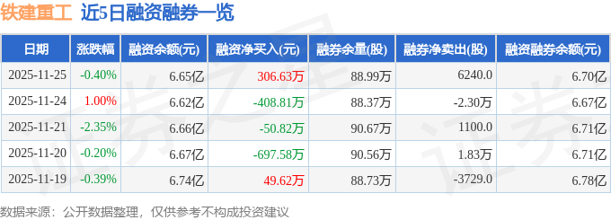 证券之星消息,截至2025年11月25日收盘,铁建重工(688425)报收于5.01元,下跌0.4%,换手率0.3%,成交量16.07万手,成交额8076.66万元。