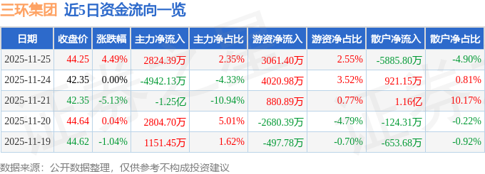 11月25日的资金流向数据方面,主力资金净流入2824.39万元,占总成交额2.35%,游资资金净流入3061.4万元,占总成交额2.55%,散户资金净流出5885.8万元,占总成交额4.9%。