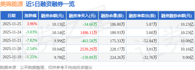 证券之星消息,截至2025年11月25日收盘,美锦能源(000723)报收于4.99元,上涨3.96%,换手率3.12%,成交量137.37万手,成交额6.73亿元。