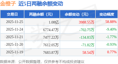 证券之星消息,11月25日,金橙子(688291)融资买入6831.92万元,融资偿还2843.37万元,融资净买入3988.55万元,融资余额1.08亿元。