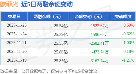 证券之星消息,11月25日,欧菲光(002456)融资买入8749.05万元,融资偿还7228.39万元,融资净买入1520.65万元,融资余额25.48亿元。