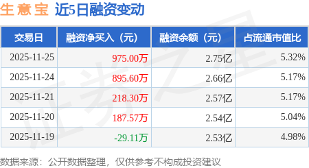证券之星消息,11月25日,生 意 宝(002095)融资买入2449.55万元,融资偿还1474.55万元,融资净买入975.0万元,融资余额2.75亿元,近3个交易日已连续净买入累计2088.89万元,近20个交易日中有15个交易日出现融资净买入。