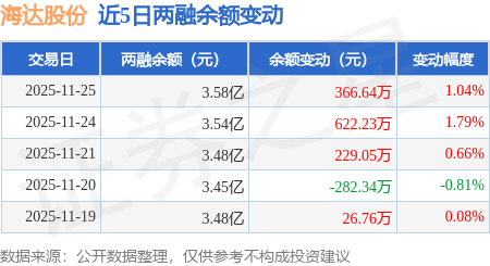 证券之星消息,11月25日,海达股份(300320)融资买入950.28万元,融资偿还583.35万元,融资净买入366.93万元,融资余额3.58亿元,近3个交易日已连续净买入累计1217.92万元。