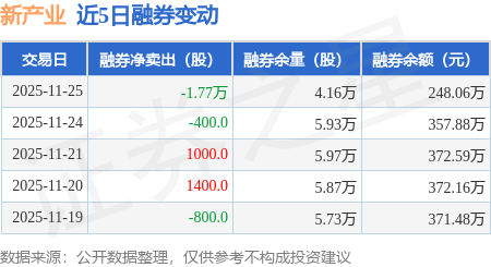 证券之星消息,11月25日,新产业(300832)融资买入1316.39万元,融资偿还1150.09万元,融资净买入166.3万元,融资余额7.7亿元。