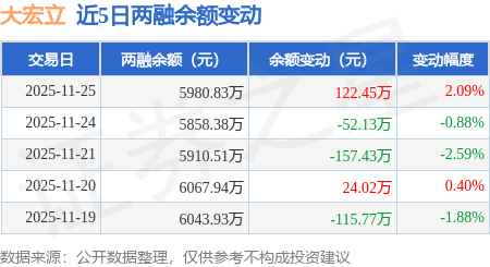 证券之星消息,11月25日,大宏立(300865)融资买入521.3万元,融资偿还398.85万元,融资净买入122.45万元,融资余额5980.83万元。