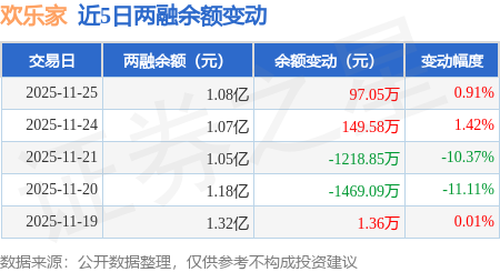 证券之星消息,11月25日,欢乐家(300997)融资买入4005.61万元,融资偿还3908.56万元,融资净买入97.05万元,融资余额1.08亿元,近20个交易日中有12个交易日出现融资净买入。