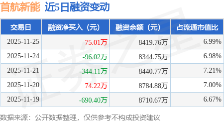 证券之星消息,11月25日,首航新能(301658)融资买入695.45万元,融资偿还620.44万元,融资净买入75.01万元,融资余额8419.76万元。