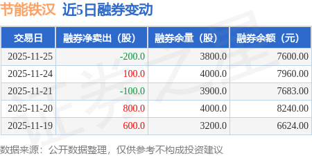 证券之星消息,11月25日,节能铁汉(300197)融资买入1051.07万元,融资偿还978.77万元,融资净买入72.3万元,融资余额2.04亿元。