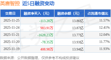 证券之星消息,11月25日,英唐智控(300131)融资买入1.93亿元,融资偿还1.94亿元,融资净卖出113.28万元,融资余额13.86亿元。