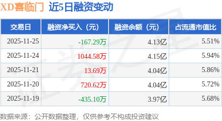 证券之星消息,11月25日,XD喜临门(603008)融资买入5009.15万元,融资偿还5176.44万元,融资净卖出167.29万元,融资余额4.13亿元,近20个交易日中有14个交易日出现融资净买入。