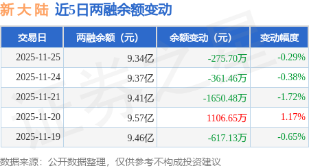 证券之星消息,11月25日,新 大 陆(000997)融资买入3643.15万元,融资偿还3910.4万元,融资净卖出267.25万元,融资余额9.28亿元。
