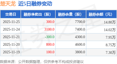 证券之星消息,11月25日,楚天龙(003040)融资买入1072.44万元,融资偿还1496.71万元,融资净卖出424.27万元,融资余额1.98亿元。