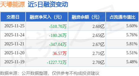 证券之星消息,11月25日,天壕能源(300332)融资买入809.07万元,融资偿还1319.77万元,融资净卖出510.7万元,融资余额2.6亿元。