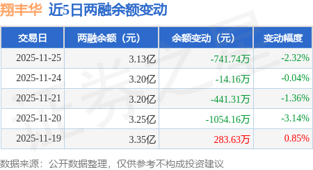 证券之星消息,11月25日,翔丰华(300890)融资买入1977.46万元,融资偿还2719.21万元,融资净卖出741.74万元,融资余额3.13亿元。