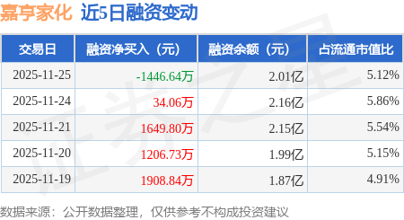 证券之星消息,11月25日,嘉亨家化(300955)融资买入2493.19万元,融资偿还3939.83万元,融资净卖出1446.64万元,融资余额2.01亿元,近20个交易日中有13个交易日出现融资净买入。