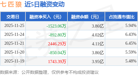 证券之星消息,11月25日,七 匹 狼(002029)融资买入4637.2万元,融资偿还6160.25万元,融资净卖出1523.06万元,融资余额3.86亿元。