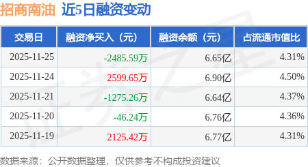 证券之星消息,11月25日,招商南油(601975)融资买入5142.16万元,融资偿还7627.75万元,融资净卖出2485.59万元,融资余额6.65亿元。
