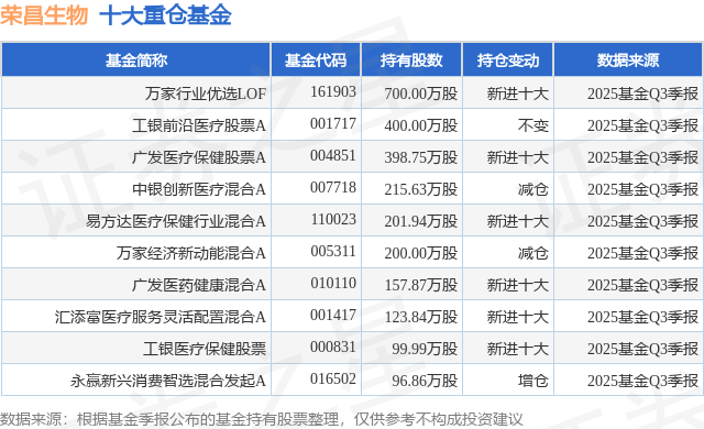 重仓荣昌生物的前十大公募基金请见下表: