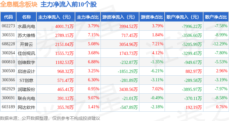 从资金流向上来看,当日全息概念板块主力资金净流出12.2亿元,游资资金净流入4.22亿元,散户资金净流入7.97亿元。全息概念板块个股资金流向见下表: