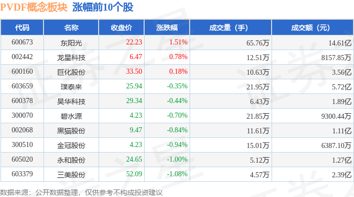 证券之星消息,11月26日PVDF概念板块较上一交易日下跌0.48%,上海新阳领跌。当日上证指数报收于3864.18,下跌0.15%。深证成指报收于12907.83,上涨1.02%。PVDF概念板块个股涨跌见下表: