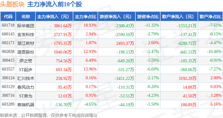 从资金流向上来看,当日头盔板块主力资金净流出2.2亿元,游资资金净流入1602.76万元,散户资金净流入2.04亿元。头盔板块个股资金流向见下表:
