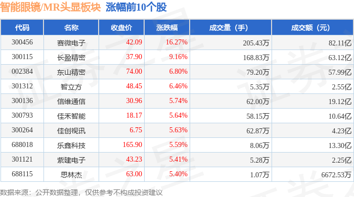 从资金流向上来看,当日智能眼镜/MR头显板块主力资金净流入42.59亿元,游资资金净流出20.25亿元,散户资金净流出22.34亿元。智能眼镜/MR头显板块个股资金流向见下表: