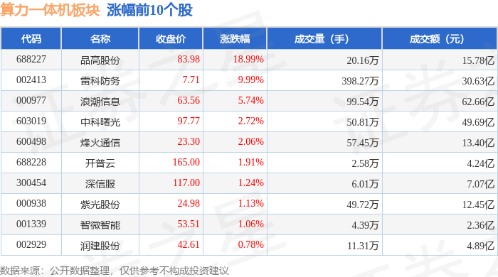从资金流向上来看,当日算力一体机板块主力资金净流入3.88亿元,游资资金净流出2.76亿元,散户资金净流出1.12亿元。算力一体机板块个股资金流向见下表: