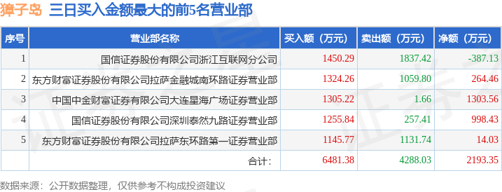 证券之星消息,沪深交易所2025年11月26日公布的交易公开信息显示,獐子岛(002069)因连续三个交易日内,跌幅偏离值累计达到20%的证券登上龙虎榜。此次是近5个交易日内第3次上榜。