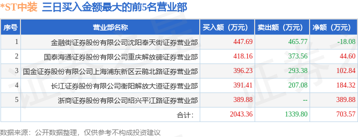 截至2025年11月26日收盘,*ST中装(002822)报收于4.43元,上涨4.98%,换手率3.0%,成交量24.26万手,成交额1.07亿元。