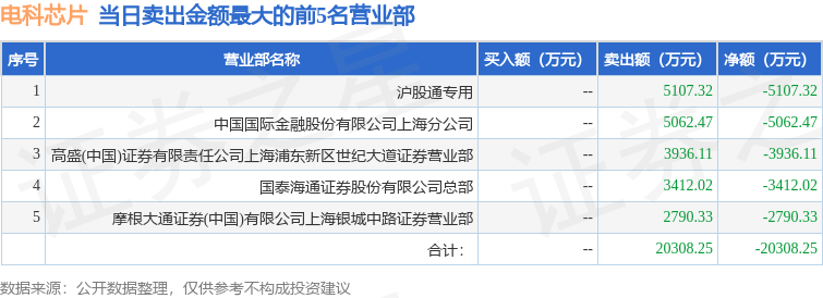证券之星消息,沪深交易所2025年11月26日公布的交易公开信息显示,电科芯片(600877)因有价格涨跌幅限制的日收盘价格跌幅偏离值达到7%的前五只证券登上龙虎榜。此次是近5个交易日内第1次上榜。
