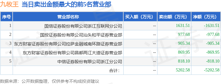 证券之星消息,沪深交易所2025年11月26日公布的交易公开信息显示,九牧王(601566)因有价格涨跌幅限制的日收盘价格跌幅偏离值达到7%的前五只证券登上龙虎榜。此次是近5个交易日内第4次上榜。