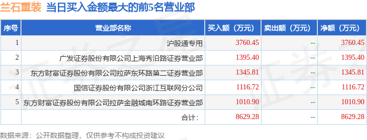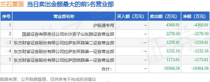 证券之星消息,沪深交易所2025年11月26日公布的交易公开信息显示,兰石重装(603169)因有价格涨跌幅限制的日收盘价格跌幅偏离值达到7%的前五只证券登上龙虎榜。此次是近5个交易日内第1次上榜。