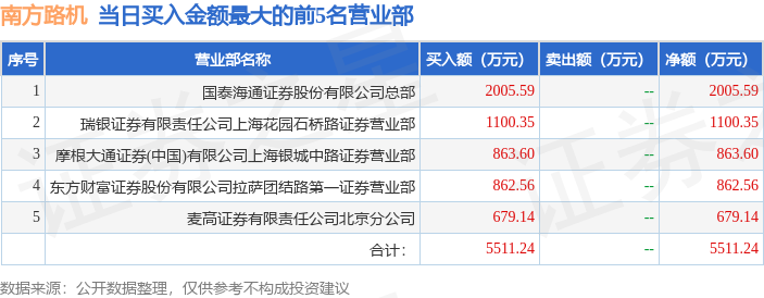 证券之星消息,沪深交易所2025年11月26日公布的交易公开信息显示,南方路机(603280)因有价格涨跌幅限制的日换手率达到20%的前五只证券登上龙虎榜。此次是近5个交易日内第3次上榜。