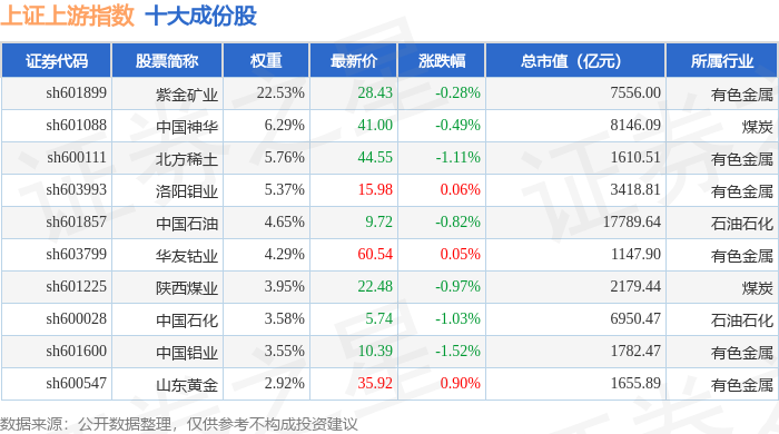 证券之星消息,11月26日,上证上游(000094)指数报收于4104.07点,跌0.5%,成交362.71亿元,换手率0.48%。当日该指数成份股中,上涨的有10家,东阳光以1.51%的涨幅领涨,下跌的有36家,广晟有色以4.07%的跌幅领跌。