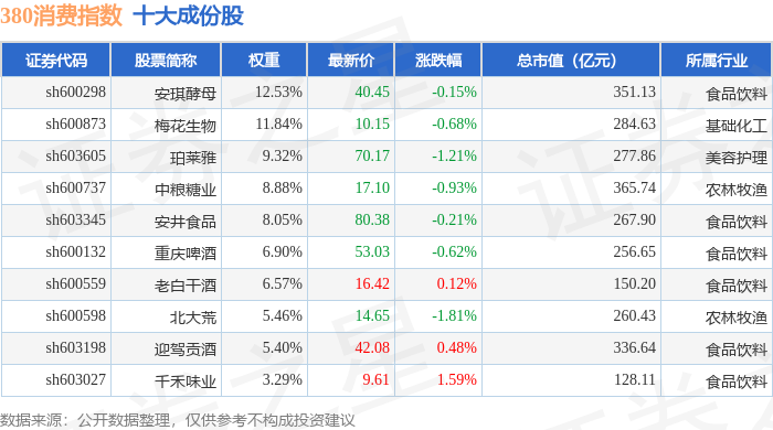 380消费(000108)指数十大成份股详情如下: