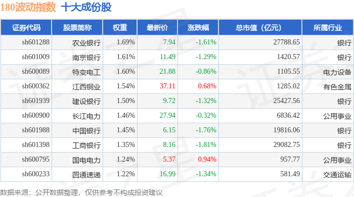 180波动(000129)指数十大成份股详情如下: