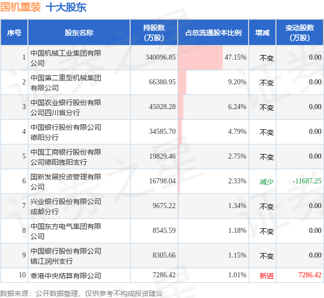 根据国机重装2025年三季报公布的十大股东详情如下: