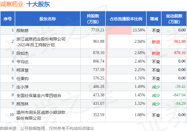 根据诚意药业2025年三季报公布的十大股东详情如下: