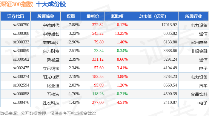深证300(399007)指数十大成份股详情如下: