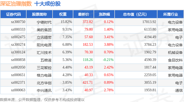 证券之星消息,11月26日,深证治理(399328)指数报收于10935.92点,涨0.86%,成交730.86亿元,换手率1.22%。当日该指数成份股中,上涨的有22家,晶盛机电以4.34%的涨幅领涨,下跌的有18家,中航光电以2.25%的跌幅领跌。